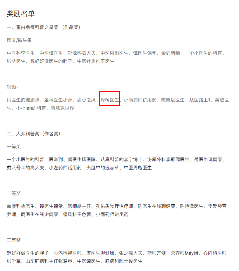 “泽桥医生”荣获“科普之星”奖和“大众科普”奖